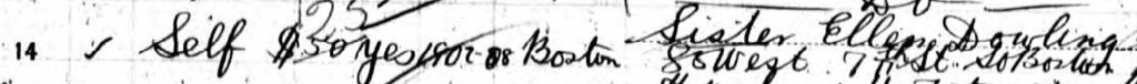 On 04 Nov 1910 Bridget arrived in New York on her way to Boston to visit her half-sister Ellen Dowling; this is the first evidence we have of a sister, and the first evidence we have that Bridget also went by the name Delia, a name she used within family circles. Ellen would have been Patrick’s daughter from his first marriage as she gives her birth year as 1863 on the record of her second marriage.